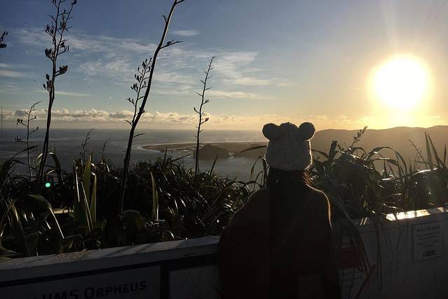 来到陶朗加时已过午饭时间,在maunganui山脚下一片波涛汹涌的海滩上吹了会海风,便决定去山顶看看。
