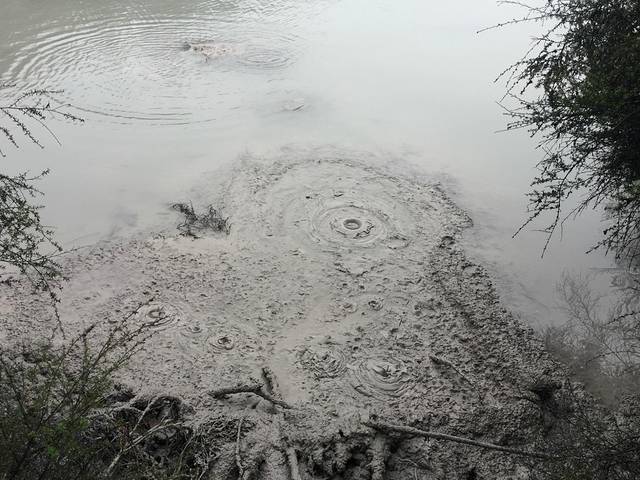 第一个就是下面这张冒着热气和泡泡的泥浆谭,据说温度很高,而且那些泥浆会时不时的溅起泥或是水。