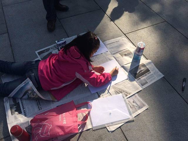花城广场上有一群小朋友趴在地上认真的画着广州塔,我想,画中一定是他们眼中广州的未来!