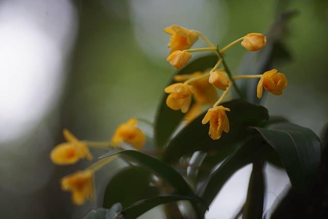 而此时最吸引的人是石斛花开放的时候,伟岸的树上结出支支优雅的黄花,极为夺目,百看不厌。我本来就喜欢拍花草,一下子又拍了很多,胳膊都举相机酸酸的。
