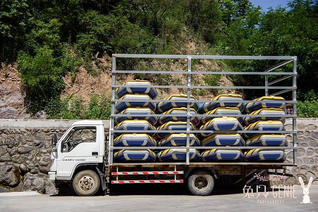 wow~一大车皮划艇运上山顶起漂点,一会儿就开漂啦!