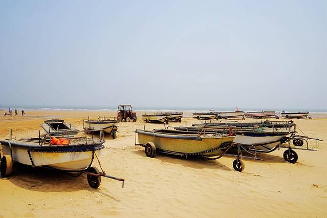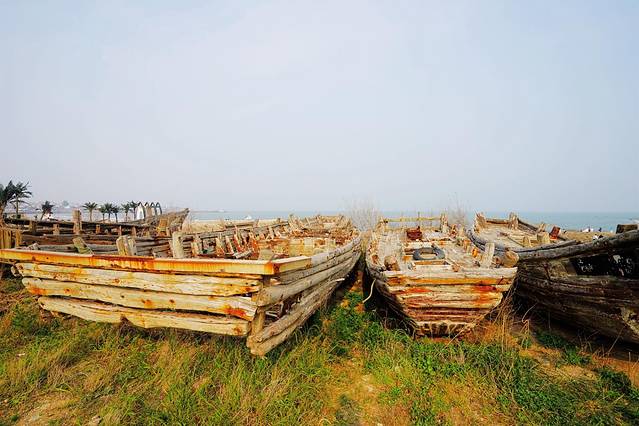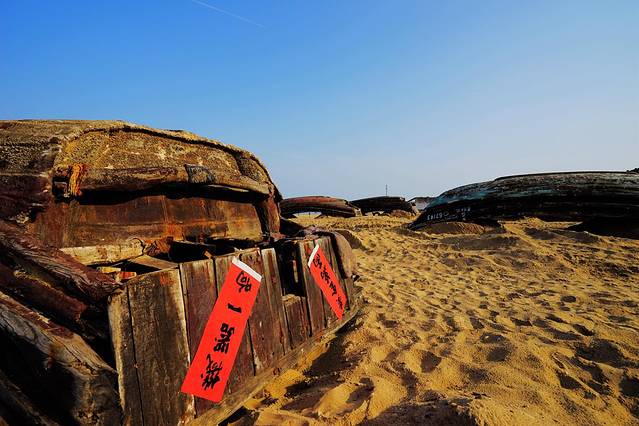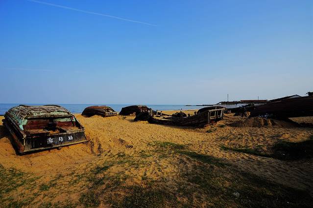 大渔船都停泊在桃花岛渔港和张家台渔港里,而这些小渔船都静静的摆放在岸边的沙堆上,看是来好像是在展览一样。