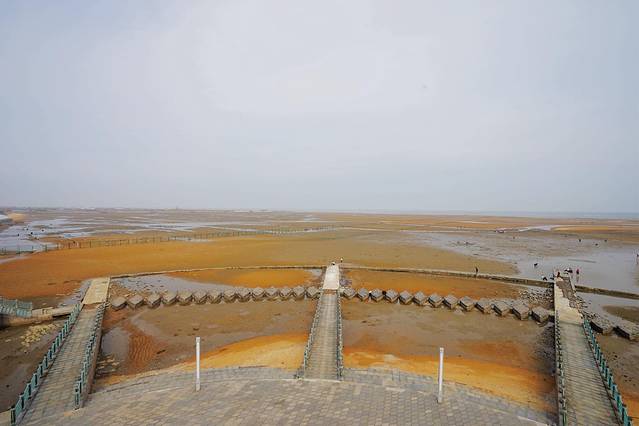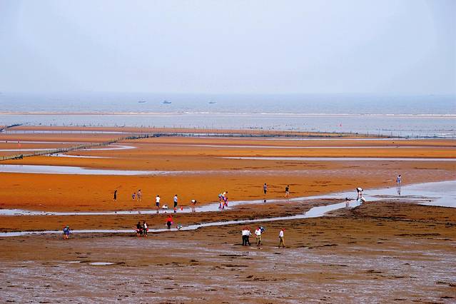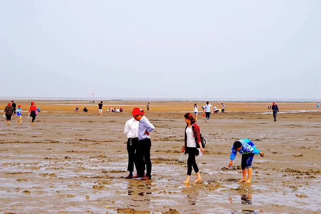 刘家湾赶海园面积不小,拥有好几公里长的海岸线,落潮时露出大面积的潮间带,滩平沙细,面积广阔。