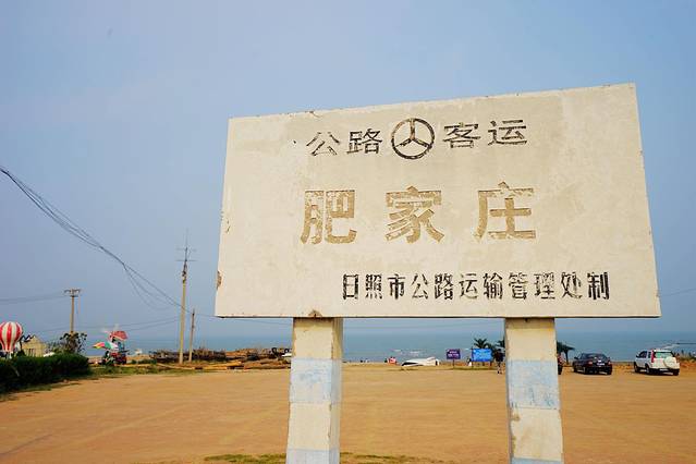 沿着海滨往南走,不远处有个地方叫肥家庄。这里名不见经传,但是看到很多游记说这里景色不错。我们特意前来看看,路边有很大的路标,清晰醒目,牌子后面就是肥家庄的海滨了。