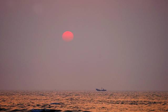 早起的渔民都纷纷出海了,迎着天边的朝霞,他们驶向茫茫的大海。他们应该是能经常看见美丽的日出的,但不知道他们是否会留意呢?