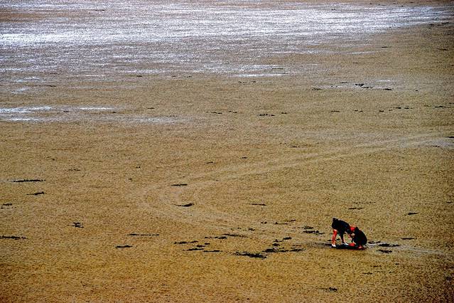 桃花岛旁的海滨主要就是沙滩,面积也不小,但是沙子比起吴家台旁边的海滨来,就要粗糙一些了,越往南走,离市区越近,沙子就越粗。