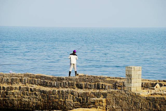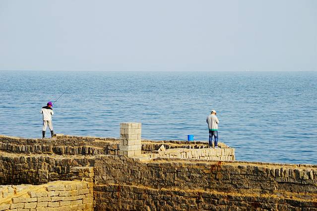 这里真的是有海天一色的感觉吧,站在这样的堤坝上垂钓,感觉也一定很不错的。