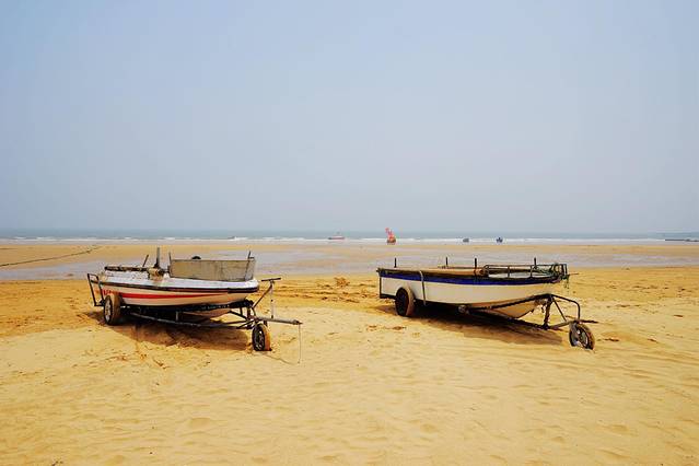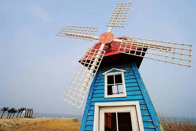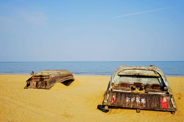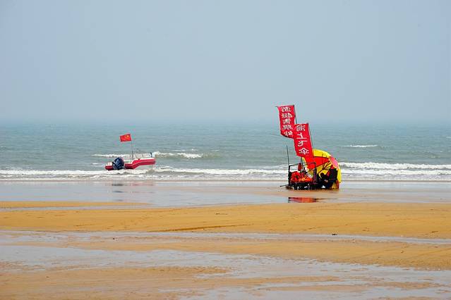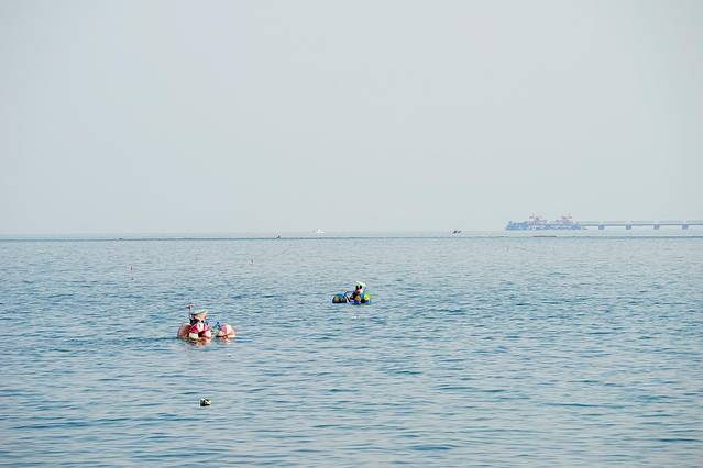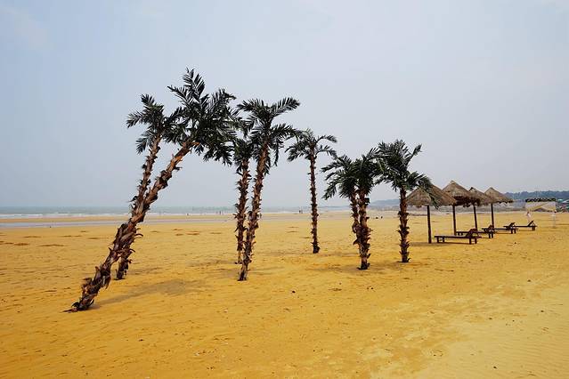 吴家台海滨的原始沙滩,也慢慢被开发起来,只是比起成熟的海滨浴场,还是要简陋得多。和去年相比,现在的沙滩上多了一些设施,也算是给单调的沙滩增加了一下色彩的元素吧。