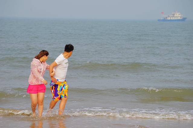 对面就是著名的第三海水浴场了,沙子虽然不如吴家台旁的第四海水浴场,但是这里离市区近,开发的很成熟和完善,所以游客最多。