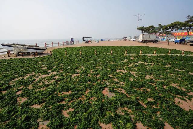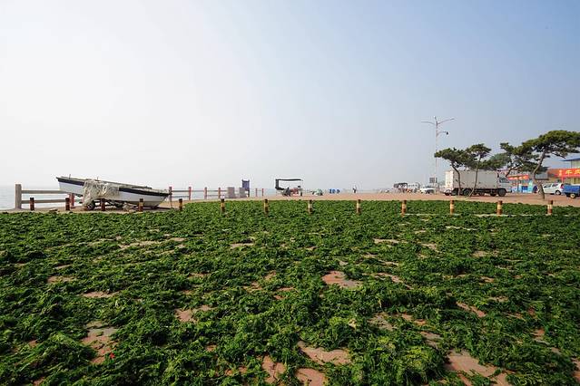 这里晒的一大片海菜,还真是很壮观啊,这玩意儿海里面多得是,还每天都会冲上来很多,晒干了可以做汤用或者加工成成品的海苔,味道特别好。