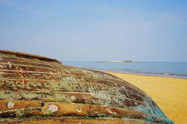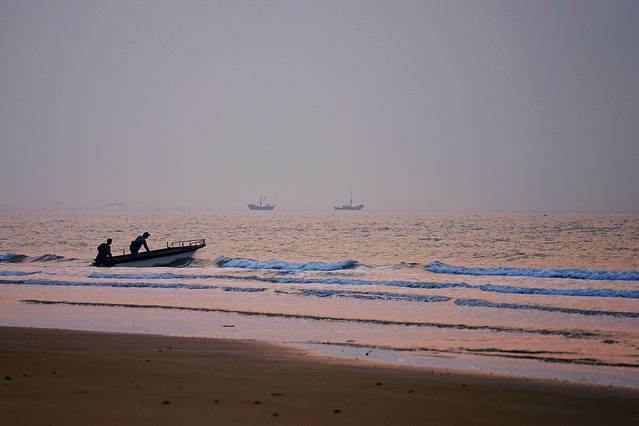 错落有致的渔船静静的停泊着沙滩上,这些小船小得让人觉得不可能是用来捕鱼的渔船,但这确实就是渔民出海捕鱼的渔船。早上我们看到出海的渔船就是这样的,每艘船只能乘坐一个人。