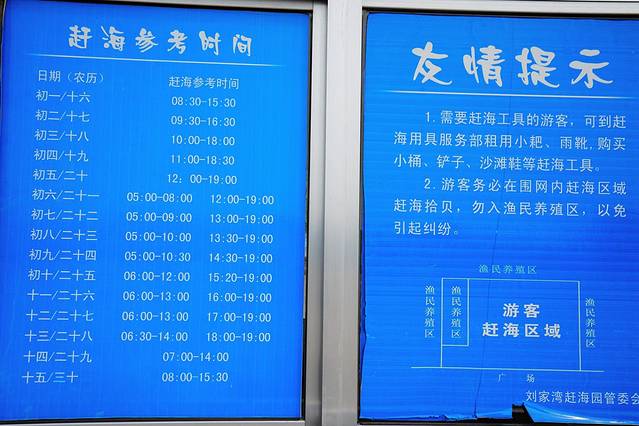 来日照玩,赶海时间表是必须的,不过这个表到处都有,每个渔家乐的墙上也会有,倒是不用提前准备。