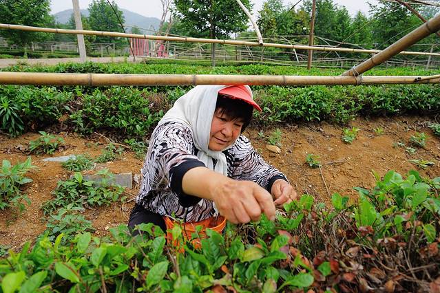 这里的茶叶看上去都有很多已经枯萎了,问了采茶的阿姨,才知道这是因为前段时间天气太冷,很多都冻死了,这就是北方一般不种茶叶的原因。