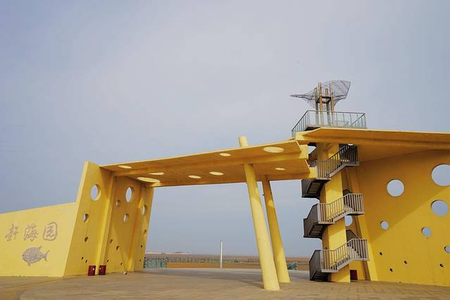 进入刘家湾的赶海区要经过这道海之门,这是赶海园的标志景观,但是没看出这门的寓意来,也不知道和海有什么关系,只是很想爬上去看看赶海园的全景。