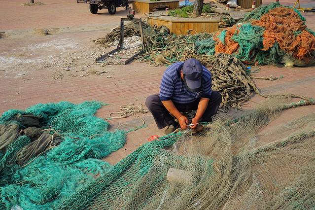 想想渔民一个人坐着这小小的渔船漂泊在一望无际的大海上,还真是要能忍受孤独和寂寞才行啊,怪不得渔民都那么淳朴,那么内向。