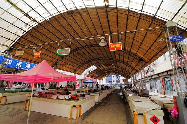 因为在网上看到日照的岚山开发区有个安东卫海货城是全国最大的海产品交易中心,自驾车从南边过来正好可以顺路去看看。安东卫海货城位于岚山开发区安东卫街道,这里离日照市区可很远呢,差不多50公里,要是从市区坐公共交通过来,需要坐1路车到日照长途汽车站,然后转去岚山方向的车。