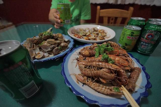 住渔家乐,其实还有个重要原因就是为了更方便地吃到味美价廉的海鲜,避免挨宰。日照的海鲜对于我们来说,即使是卖给游客的价格,也是不算贵的。当然,我们也不傻,也希望价格越实在越好,所以海边的大排档基本上不敢去吃的,一是口味不敢保证,二是价格也不放心。虽然日照不是青岛,还不会那么离谱,但是现在海边的大排档很多都不是本地人经营,只做旺季游客生意的店铺真的是没有任何保证的。住在渔民家里就完全不一样了,虽然也要赚钱,但完全是不一样的心态。在渔家只要不太吝啬,那就可以尽情享用最新鲜的海捕海鲜,价格绝对要比外面吃便宜得多。很多人平时不怎么吃海鲜,但是我们不一样,知道最新鲜的海鲜在这种旅游城市,只有在熟悉的渔民家才能吃到了。