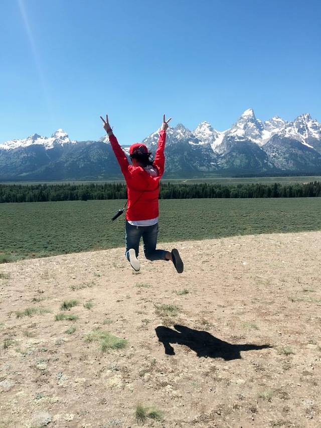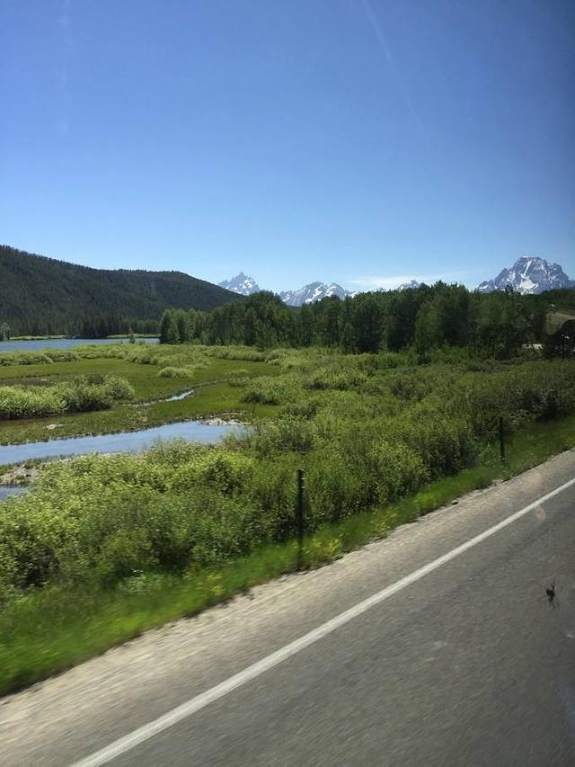 沿途经过了大提顿国家公园,山上的冰真的是历经这么大的艳阳也不化,雪真的是积的厚厚的