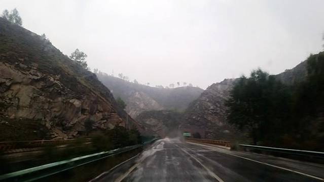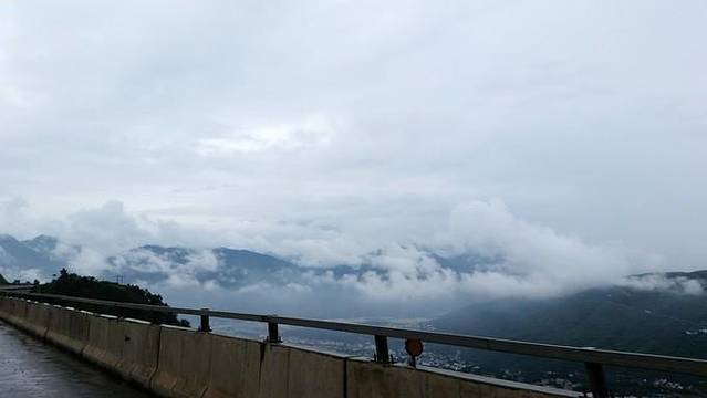 到中午十二点多的时候,在京昆高速上。雨停了,远处云雾缭绕的在山头山腰。憋了好几个小时,大伙嚷嚷着都找地方停车下车活动下,那个兴奋劲现在想起来也感觉蛮好玩的。上照