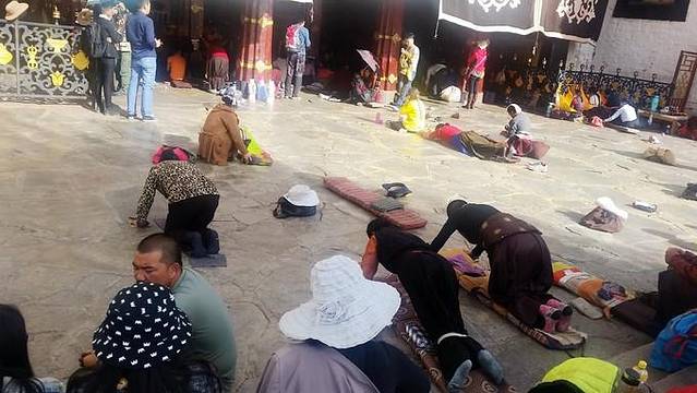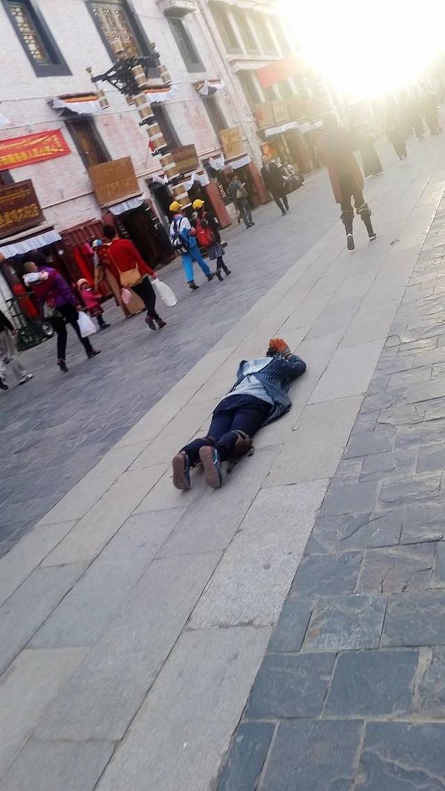在八角街闲逛之后,看见磕长头的一位妇人匍匐着。心里有一阵莫名的悸动,这是怎样的一种信仰。