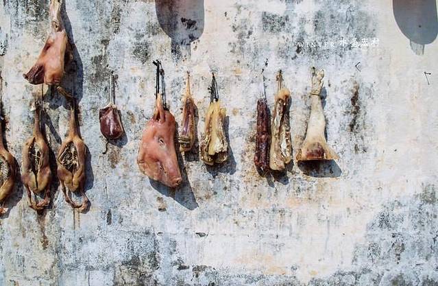 月沼附近晾晒着大量的腊肉。