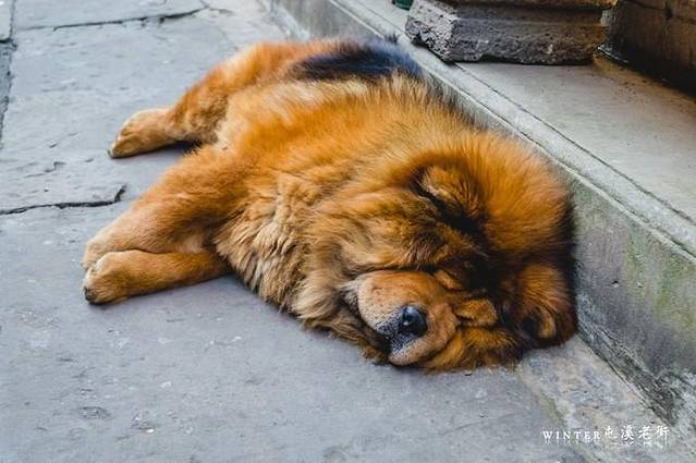 路上偶遇一只松狮,依照我以往的观察,每个景点里的猫也好狗也好,体重轻的很少,不知道是不是它们的伙食都太好了。它就这么的在噪杂的大街上睡的这么舒坦,这种精神值得我这种睡眠晚的人学习!