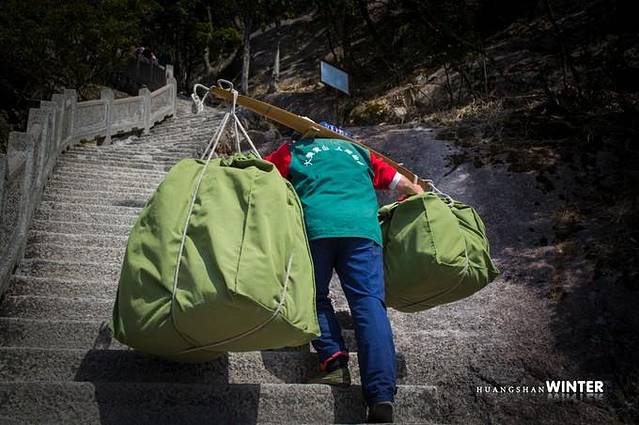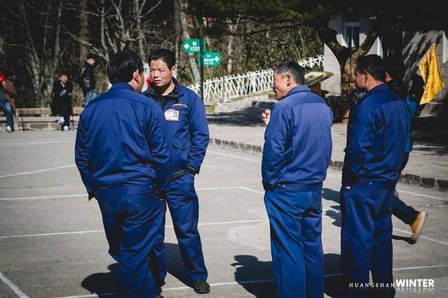 穿蓝色衣服的都是抬人上山的师傅,起步价100元,也是蛮拼的,钱难挣啊。