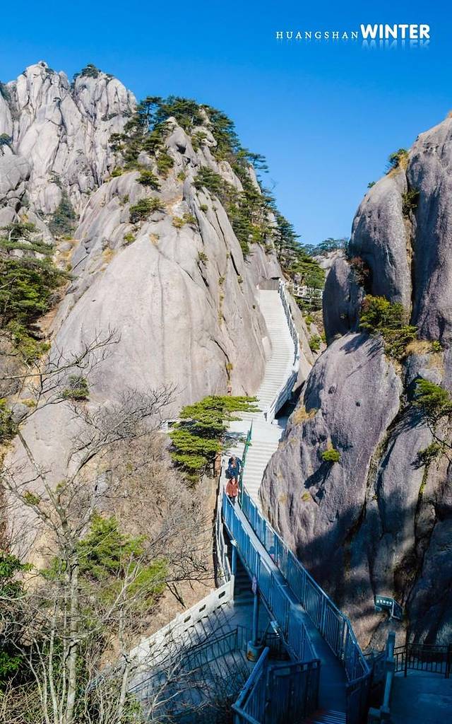 走过百步云梯到达莲花峰地段,莲花峰是黄山的最高峰,海拔1864,现处于轮休状态;莲花峰和天都峰每5年各自轮休一次,因山形太过险峭,莲花峰即将进入轮休期的第三年,而与其对望的天都峰4月1日起照常开放。