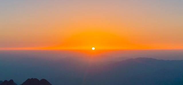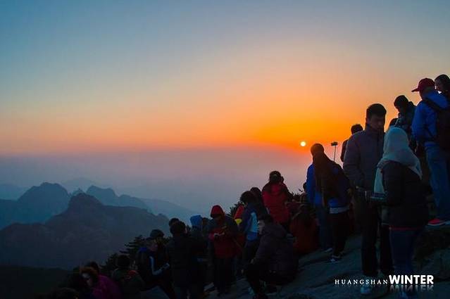 光明顶日落,密密麻麻的人群。