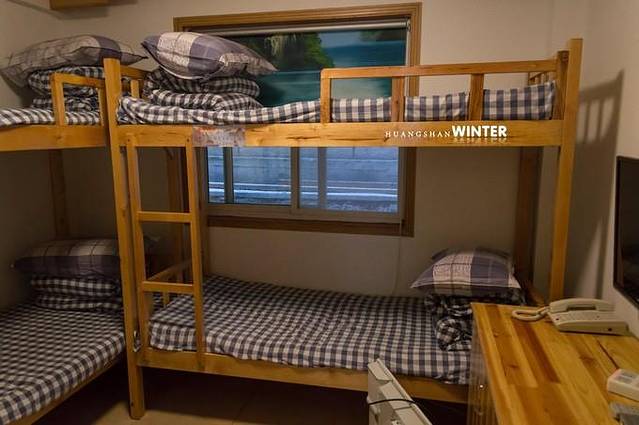 2、黄山住宿一晚。排云楼是黄山上其中一家观光型宾馆,级别四星。位于丹霞峰脚下,也是从北海徒步到西海的必经之处。因山上建筑都是挑夫挑上去的材料,人工费很高,房间价位也相对山下要高昂的多,不过山上的宾馆都有上下床位房,床位80元上下一晚(淡季价格),配有独立卫浴、房间没有空调,只有个电热暖气,对于2月底的天气来说也不会显得冷,房间还算干净,空间小了一些也够用。关于山上住宿根据山上行程预订宾馆,合理安排,山上也可以选择白云宾馆、北海宾馆、狮林之类,床位房条件都差不多。