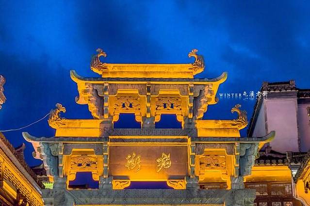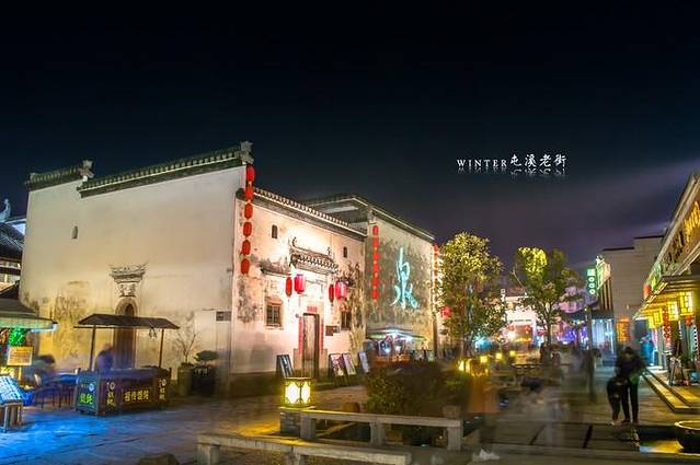 在探黎阳老街,黎阳老街不同于屯溪老街的一条路,老街两侧的巷子很多,又称黎阳in巷,灯光略显不足,但很有气氛。