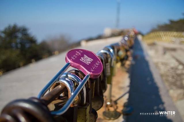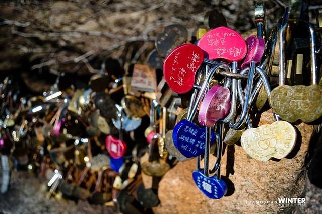 去往黑虎松的路途走过一座挂满同心锁的小桥。