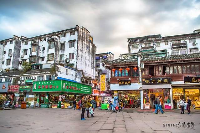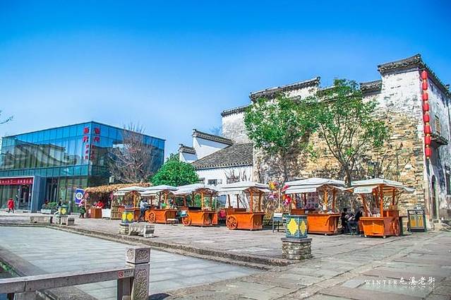 走过屯溪老大桥,就到了与屯溪对望的黎阳,2010年的改造之后导致黎阳大多数老宅不复存在,保留下来为数不多的几处老宅,其他剩下的多为仿古建筑,老屯溪人相传下来有一句俗语“明清个屯溪,唐宋个黎阳”。如果说屯溪老街是经典、如今的黎阳老街就是萌生出的新芽,老建筑、购物、酒吧、电影院、散步广场,现代感十足。