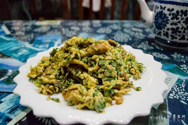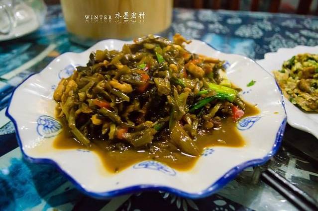 去往村外的1983徽菜馆吃饭,餐馆是一对夫妻经营,老板的年龄命名的餐馆,点了个五加皮鸡蛋和雪菜肉丝,一个人出行吃饭是个问题,点多了吃不了、点少了又尝不到更多的特色菜。五加皮说是当地的一种野菜,加上鸡蛋这盘菜30元大洋,味道还可以,价钱无力吐槽了。