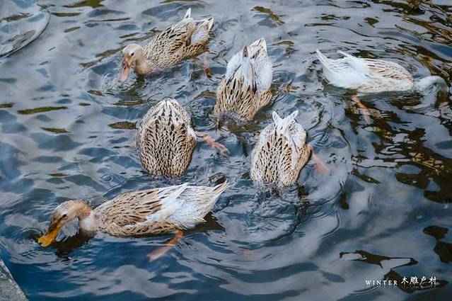 河里的鸭子通常不停的把头部扎进水里寻找食物。
