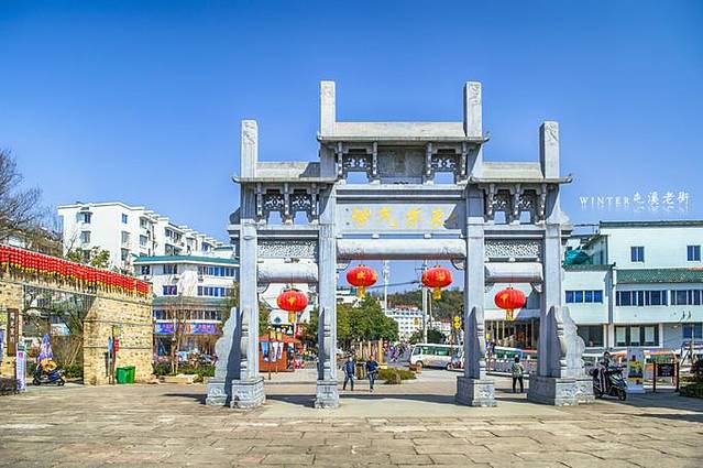 紫气东来,咋一看很俗气的话语,黎阳老街入口牌坊。