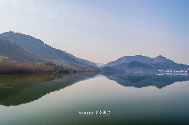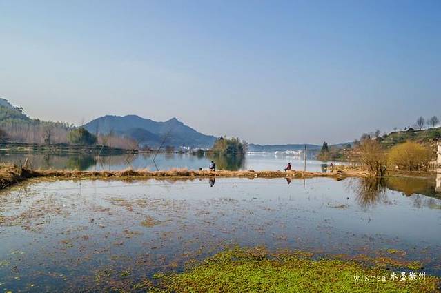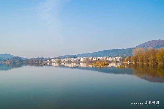 如果月沼没有洗菜的情况,水面平静的像一面镜子,岸边的徽派建筑在水面呈现出水平镜像状态。