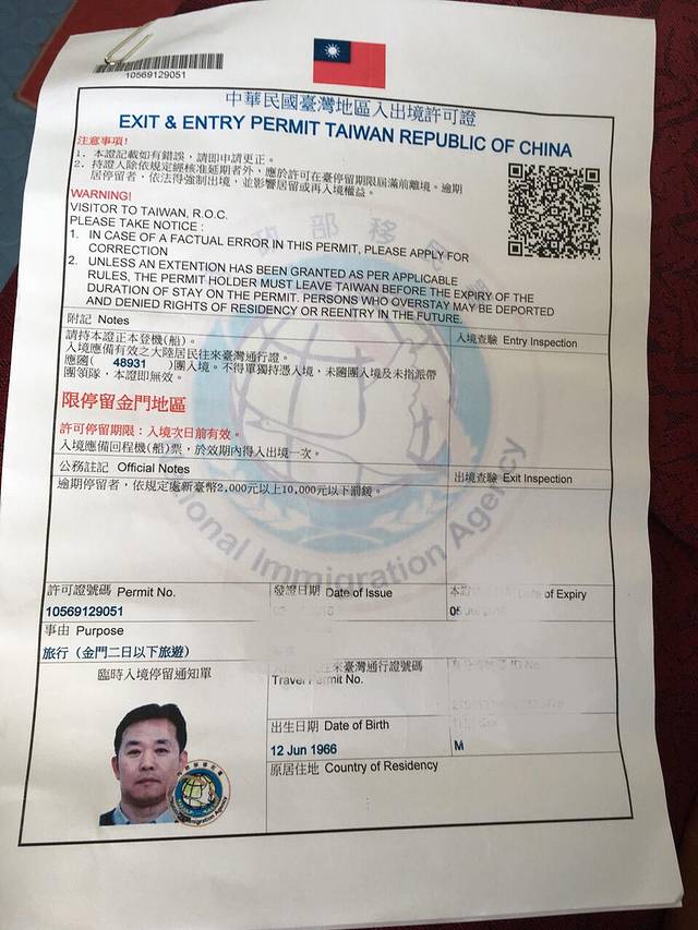 赴金门旅游除了需要办理赴台证外,还要办理一个金门通行证,我们的是旅行社免费代办的,很简单,拿手机拍照直接发给工作人员即可