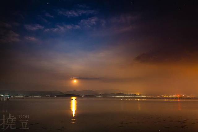 ▲洱海中秋红月亮