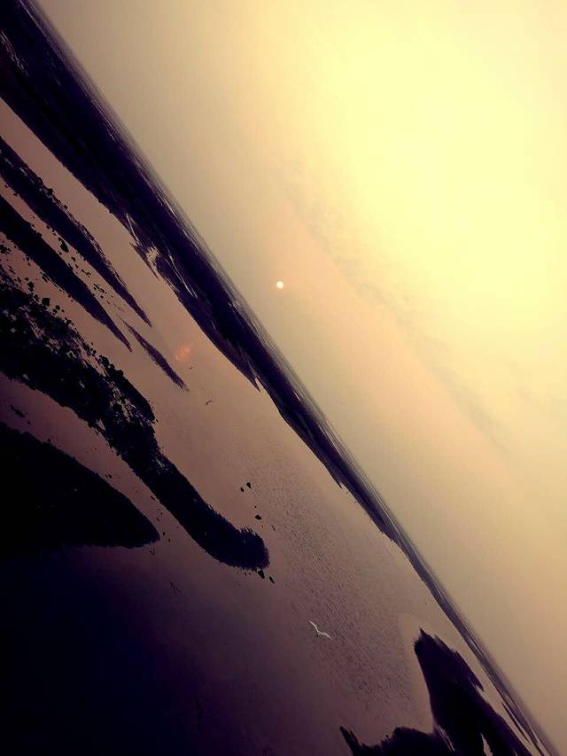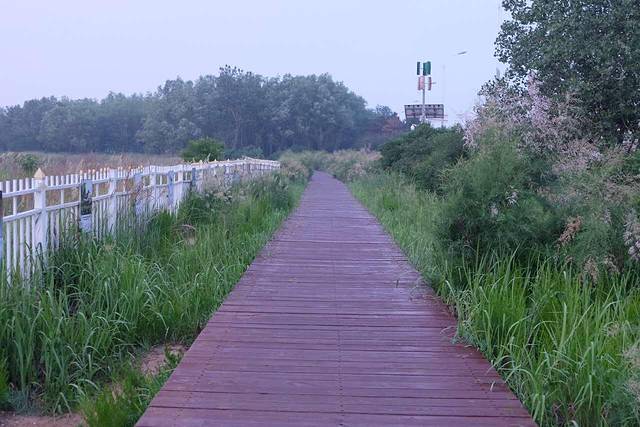来之前老师就说,最近水汽很重,估计看不到日出。到了确实能感觉到,天气不是很好,晚上问宾馆小老板,能不能看到日出,他居然说:能!SO,我们定了3点40的闹钟。早早起来出发了,看天气,觉得没啥希望,也没去鸽子窝,沿着海边栈道一直走,到了湿地旁边,开始等。这里很多来打鸟的摄影爱好者,也有跟我们一样来看日出的人。