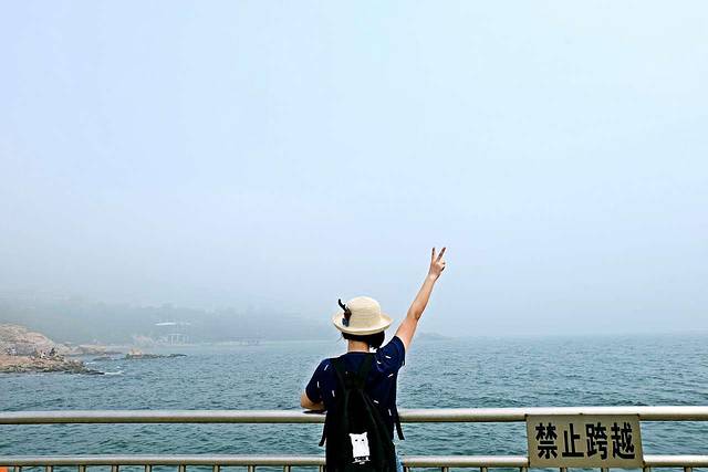 中午太热,我们一直休息到下午四点,才出门,进击联峰山。之前没这个计划,是老师强烈推荐的,说山上有个望海亭,看海很美。地图查了走路只有十分钟路程,结果小老板告诉我们,不止,建议坐车。事实证明,确实不近,坑爹的地图,出门还是要多问问当地人呀~出门坐34路到终点:滨海汽车站。服务站问了下到联峰山走路大约20分钟,想看看风景,就没再坐车。一路走走停停。