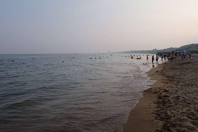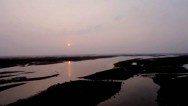 水汽很重,看不到太阳刚刚出海面的样子,不过,也很美啦~