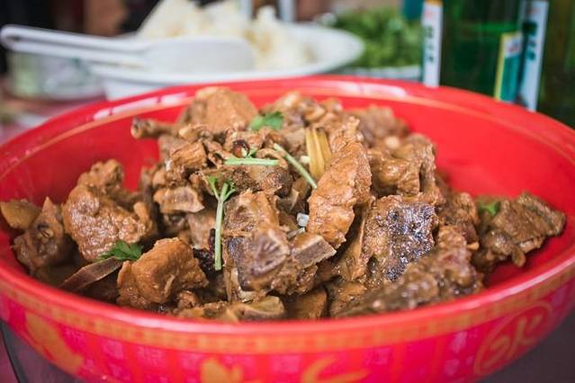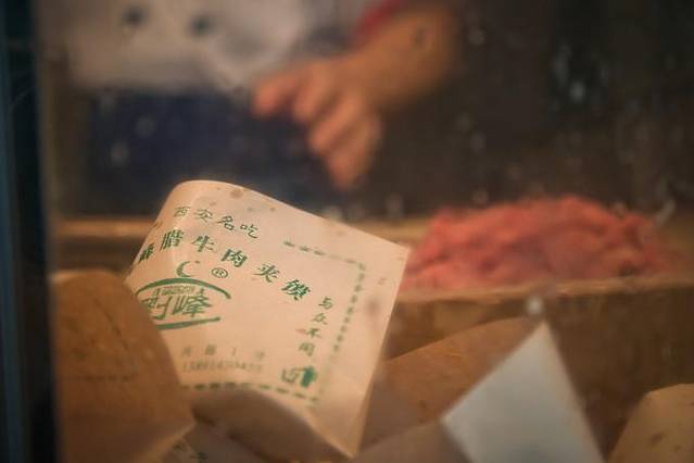 早上5点半便起床的我,在把自己收拾完毕后先来吃心心念已久的肉夹馍。肉夹馍实际就是两种食物的绝妙组合:腊汁肉,白吉馍。肉夹馍合腊汁肉、白吉馍为一体,互为烘托,将各自滋味发挥到极致。馍香肉酥,肥而不腻,回味无穷