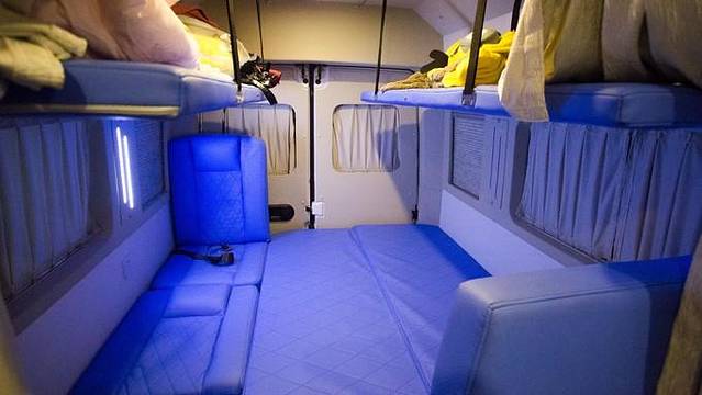 房车里面有升降的桌子,有电磁炉,有冰箱,白天时可以是座位,晚上把他铺下来可以当床。使用起来十分方便。