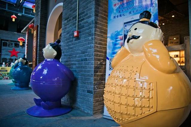 广场上透明玻璃底下就是延安1938的街区,在玻璃上往下看可以看到底下的人。当然,,,穿裙子的菇凉们还是不要在这里挑战极限了。。。