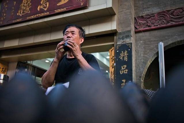 在西安的夜晚必定是酒足饭饱过后来到青曲社来听上一段相声。在听到起劲开心的时候,发出“噫”的一声来表示对演出者的赞同与尊重。