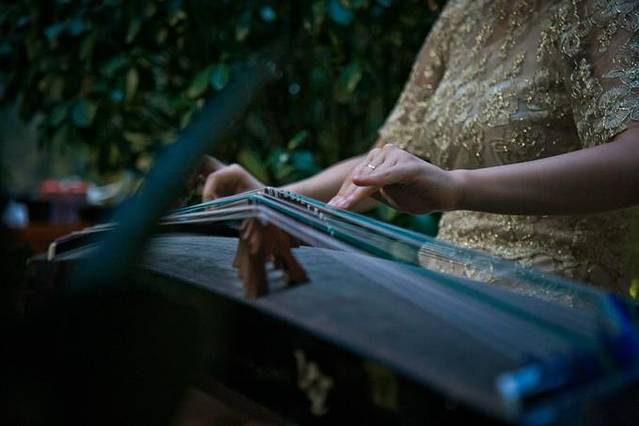 院子里有人在弹古筝,在这样的老房子里边吃饭边听古筝的感觉很赞!