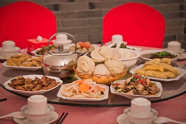 嗯,我们是在窑洞里吃这么丰盛的一顿的!
