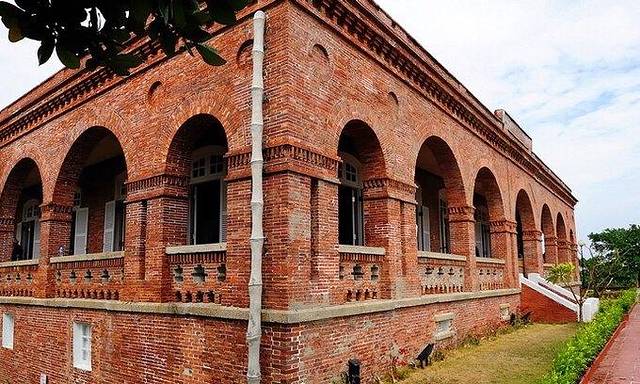 沿着不断拐弯的阶梯上去即是打狗英雄领事馆,在上面的平台上可以俯视西子湾的美景。之于大陆人而言,打狗可能引申为另一种含义,但其实“打狗”是台湾原住居民语言的音译,代表一个地名,并未有羞辱的意思。当时英国为了扩展自己的经济利益,率先在打狗港的哨船头海滨设置领事馆办公室,并在小丘上建立了一栋西洋式建筑作为官邸。中西合并的建筑风格花栏石雕及圆拱设计具有浓厚的英式风,而竹节状的落水管却是清末洋楼的特色。