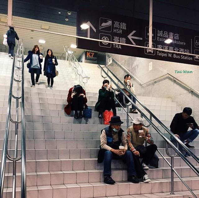 妈妈不断在跟我抱怨以后不走超过五天的旅程了,可能是因为感冒加重再加上脚也不听使唤了,疲惫不已的我们就戴着口罩在台阶上休息,在人声鼎沸川流不息的流动场所,我居然还是睡着了......